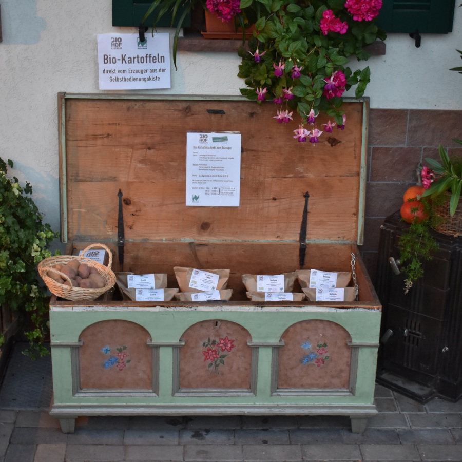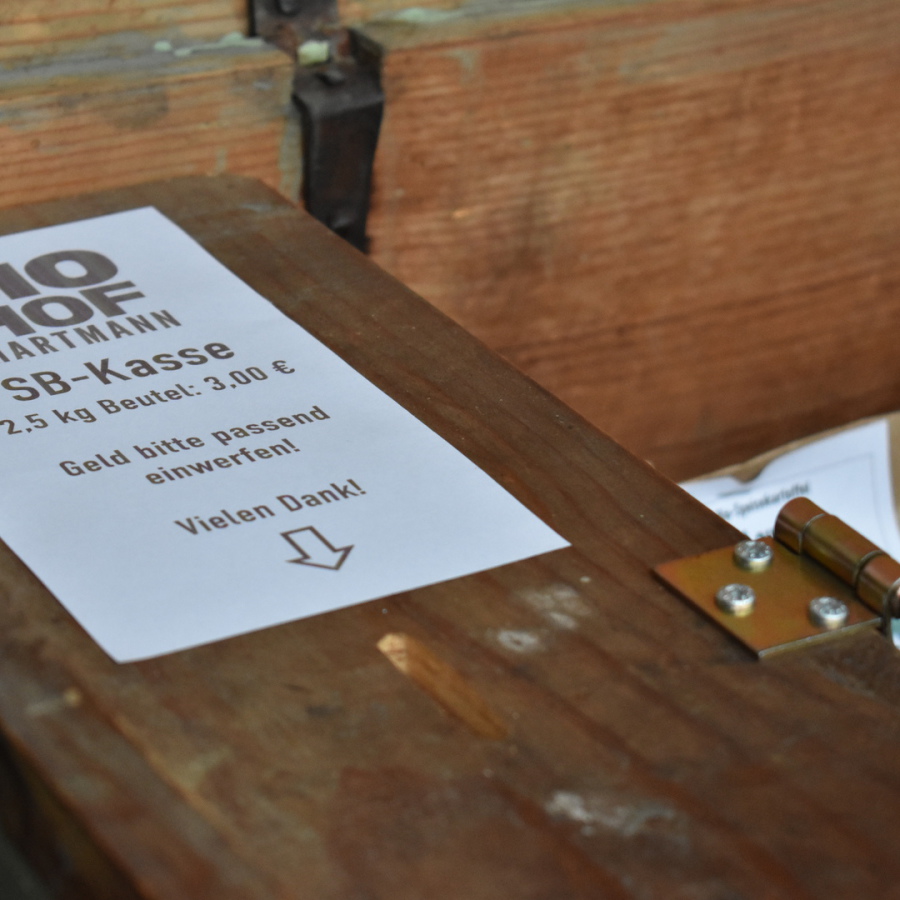 Aus unserer SB-Kartoffelkiste können Sie täglich Kartoffeln kaufen.